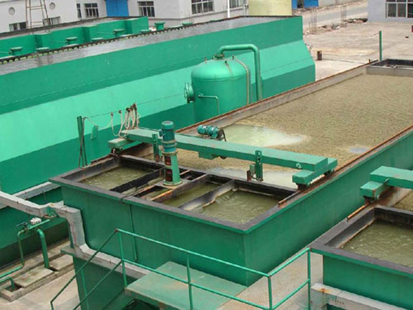 (4) 二沉池:生化后的污水進(jìn)入二沉池,二沉池設(shè)計(jì)表面負(fù)荷0.9-1.2m3/m2.d二沉水槽為升降式可調(diào)液位,齒形集水槽,其槽集水均勻沉淀效果較好,二沉的污泥氣提至污泥池。